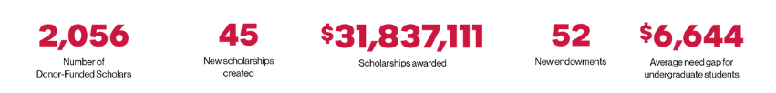 In this report, you can witness myriad ways philanthropy makes a difference. Join me in celebrating the opportunities and innovations that are only possible because of the investment of individuals like you. Thank you for your involvement and generosity that help make the future of our university incredibly bright.