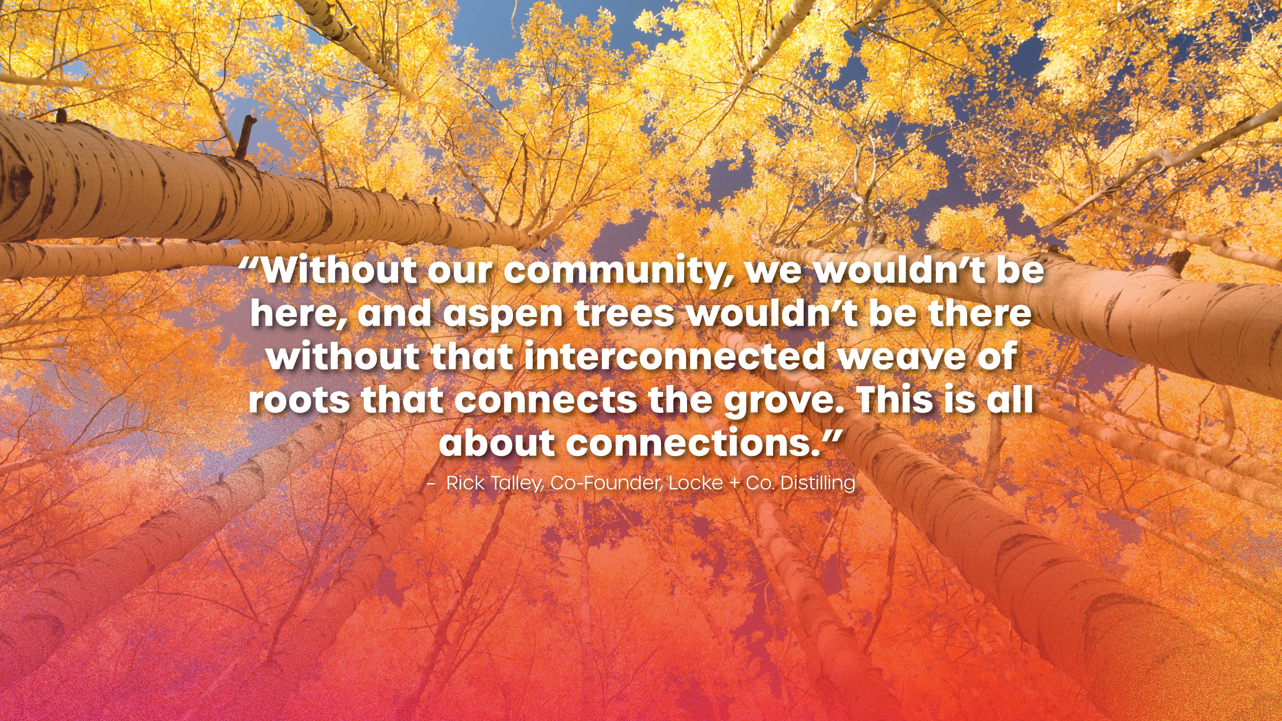 “Without our community, we wouldn’t be here, and aspen trees wouldn’t be there without that interconnected weave of roots that connects the grove. This is all about connections.”