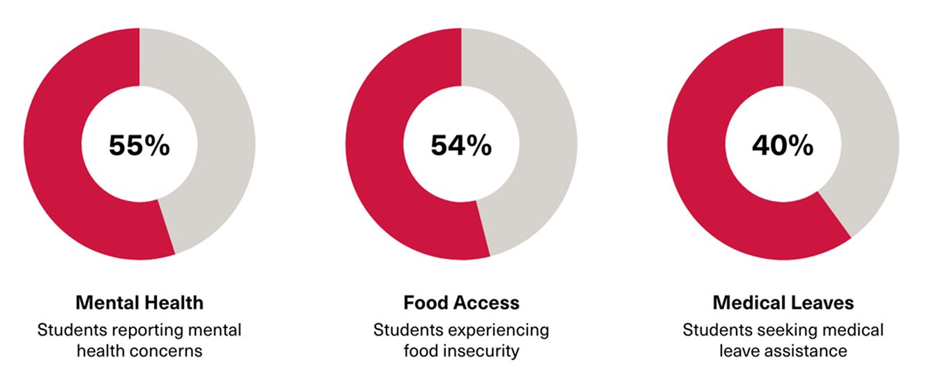 The following data represents the most significant issues reported by students seeking assistance from Student Outreach and Support (SOS).